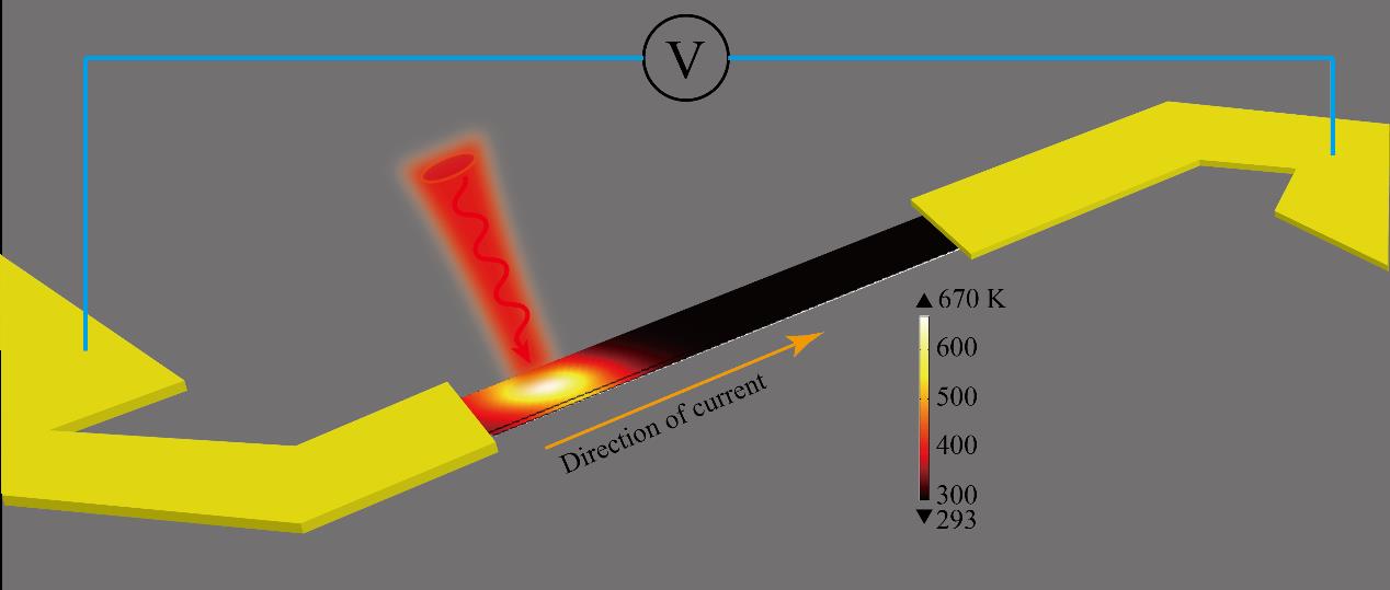 徐红星课题组通过结合来源丰富、与CMOS工艺兼容的硅材料与先进的微纳加工技术,首次在硅纳米材料中实现了不同于晶格温度的热载流子温度场稳态分布,结合包含载流子-晶格双温度模型的光-热-电多物理场模型对硅光热电效应光电响应进行了模拟和优化设计,通过欧姆型电极接触和利用轻掺杂硅纳米材料成功实现了基于光热电效应的高达105 V W-1 @633 nm的开路光电压响应,比先前文献报道光热电效应光电响应高3-4个数量级,为利用光热电效应和热载流子能量提高光电转换效率的实际应用提供了重要思路。