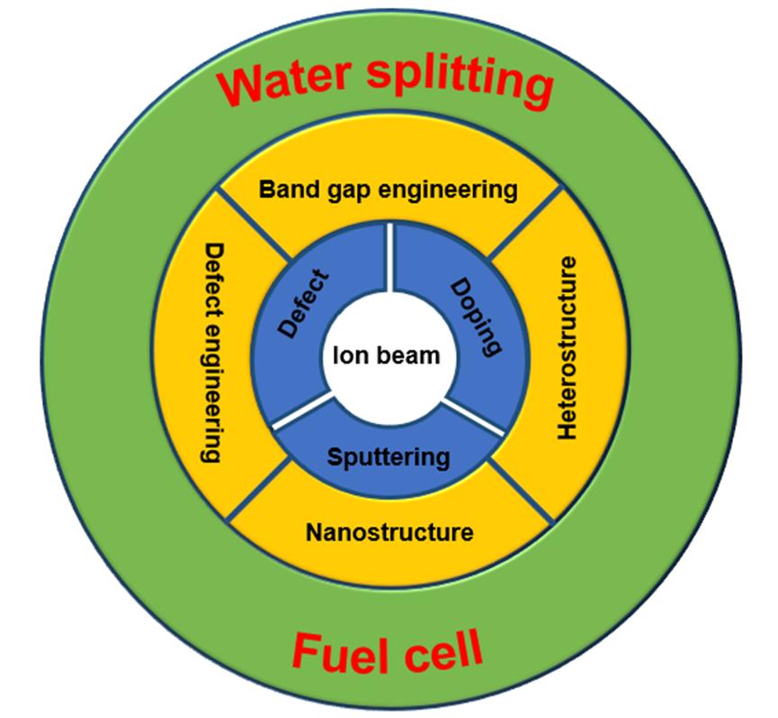 为了实现人类的可持续发展,开发环境友好,可再生并且廉价易得的新能源转化与存储方式具有重大的意义。以水分解制氢,燃料电池等为代表的(光)电催化能源存储与转换技术是其中的关键技术之一。为了发展高催化活性,稳定性优异的(光)电化学催化材料,需要对催化材料进行合理设计,制备和改性。离子束技术作为一种高效和精确的物理改性手段,可以实现材料多维度的改性。