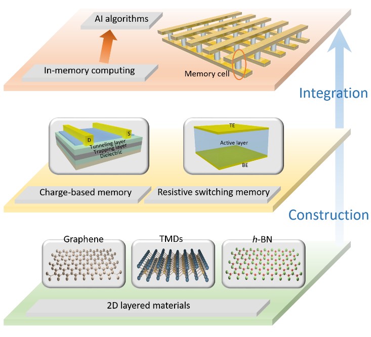 文章从二维存储器件的最新研究进展及其在存内计算中的应用等方面展开详细论述。通过对其工作原理的系统归纳,总结了二维材料在高性能存储器件设计方面的独特优势,介绍了其在存内计算、电子突触模拟、模式识别等研究中的进展,同时阐述了二维材料在面向人工智能的下一代存储技术中的应用前景。最后,文章还详细讨论了目前高性能二维存储器在构筑、集成和实际应用中的关键挑战,对其未来的发展进行了展望。