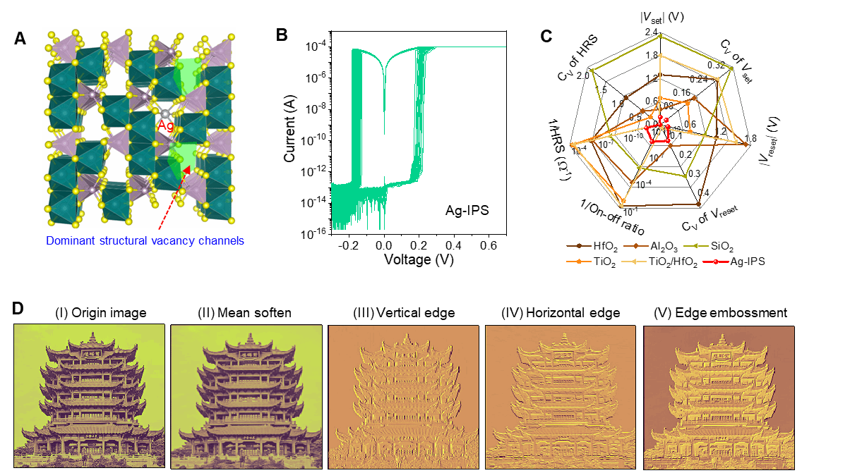 近日,何军教授课题组在Science子刊Science Advances,发表了题为“Ag-doped non-imperfection-enabled uniform memristive neuromorphic device based on van der Waals indium phosphorus sulfide”(《基于Ag掺杂范德华铟磷硫的均匀阻性神经形态器件》)的研究论文。骰宝规则 李叶生老师为第一作者,何军教授和李叶生老师为共同通讯作者。该工作得到国家重点研发计划、国家自然科学基金、江苏省自然科学基金和湖北省自然科学基金的经费支持,同时也受到了骰宝规则 电镜中心的支持。