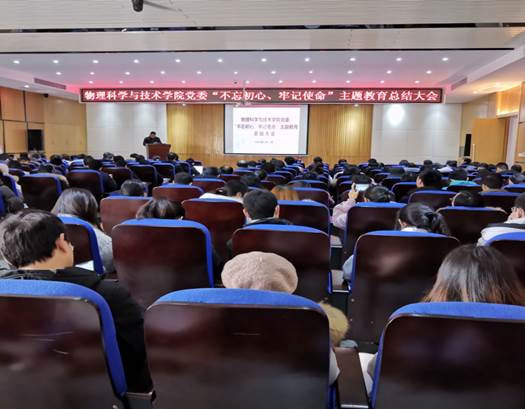 党委在学院报告厅召开“不忘初心、牢记使命”主题教育总结大会,全体院领导、院党委委员、在职教职工党员和学生党员代表参加。学院党委副书记张一飞主持会议。