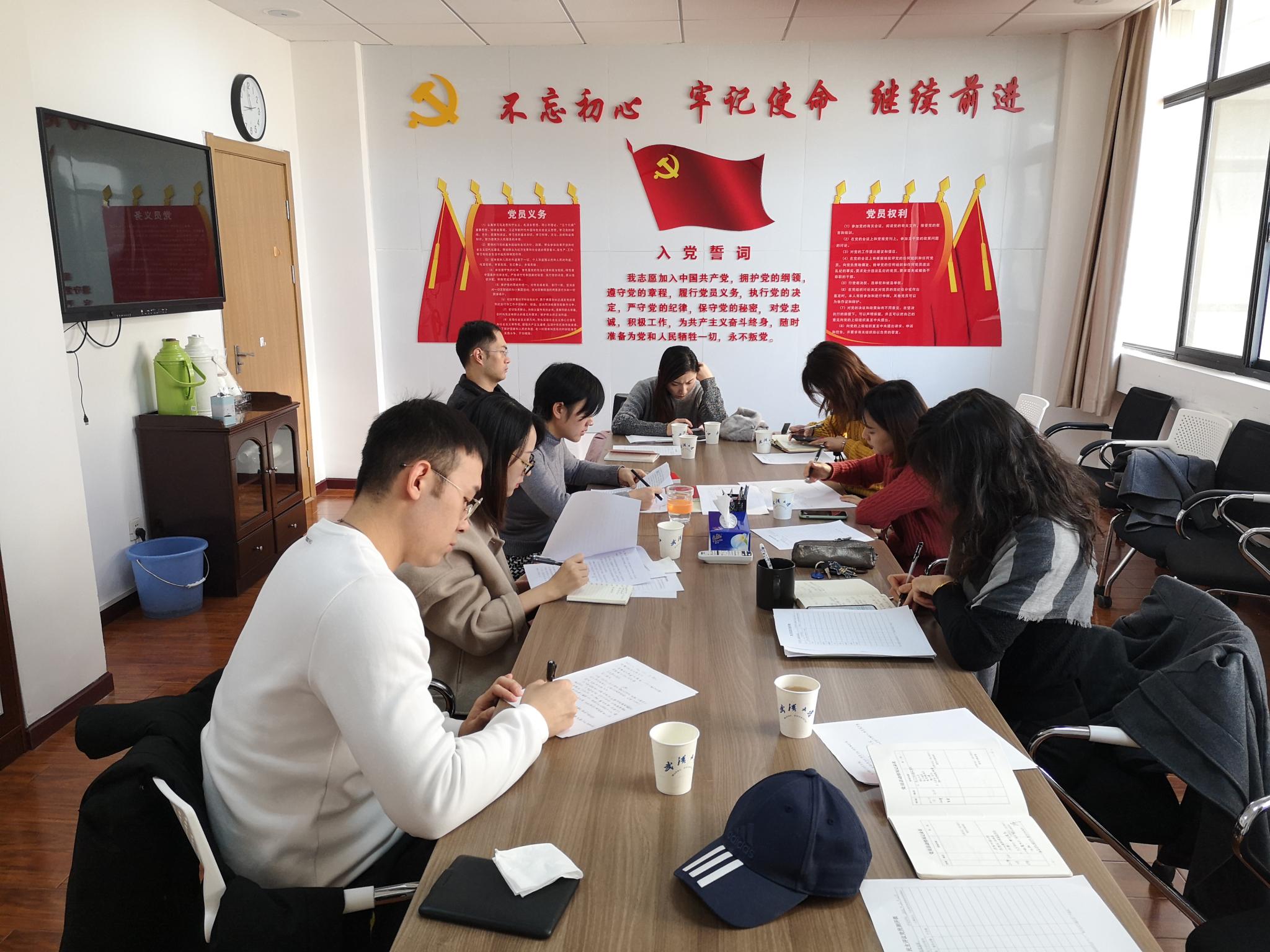 12月3日,根据学校《关于做好专题组织生活会和民主评议党员工作的通知》(武大组字﹝2019﹞43号)文件精神,弘毅学堂党支部召开了“不忘初心、牢记使命”主题教育专题组织生活会暨民主评议党员会议,支部全体成员参加,支部书记方萍主持会议。