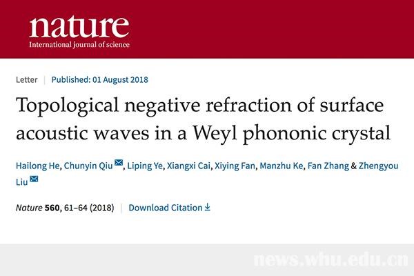 基础理论研究与应用研究并重,高水平科研成果不断涌现。随着国家对基础学科的日益重视和科研条件的改善,学院科学研究在量上有提升,在质上有突破。以第一署名单位在《Nature》(Nature 560, 61 (2018))上发表论文“Topological negative refraction of surface acoustic waves in a Weyl phononic crystal”(《外尔声子晶体中的声表面波拓扑负折射》),实现了骰宝规则