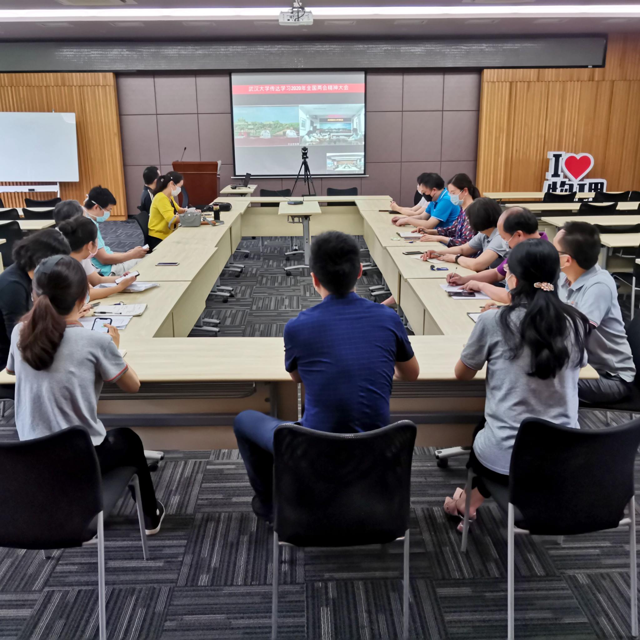 5月29日上午,学校召开传达学习2020年全国两会精神大会,书记、院长出席主会场会议,学院内设机构主任及以上干部在院内分会场参加视频会议。会上,校党委书记韩进主持会议,全国人大代表、校长窦贤康传达了十三届全国人大三次会议精神,传达了习近平总书记参加湖北代表团的审议时的重要讲话精神,传达了政府工作报告主要精神,民法典、建立健全香港特别行政区维护国家安全的法律制度和执行机制的决定主要精神。全国政协委员、基础医学院章晓联教授传达了全国政协十三届三次会议精神,分享了参会感受。韩进书记总结会议并就贯彻落实好全国两会精神提出三点要求:一是要认真学习领会两会精神,二是要认真贯彻践行两会精神,三是要切实做好当前各项工作。韩书记希望全体师生员工要凝心聚力、团结一致,克服疫情带来的暂时性困难,进一步开展好线上教学,实现管理工作的常态化、规范化,在复课准备工作、谋划学科发展、“十四五”规划编制前期准备工作、提升治理能力等方面下功夫,切实推进各项工作有序开展。