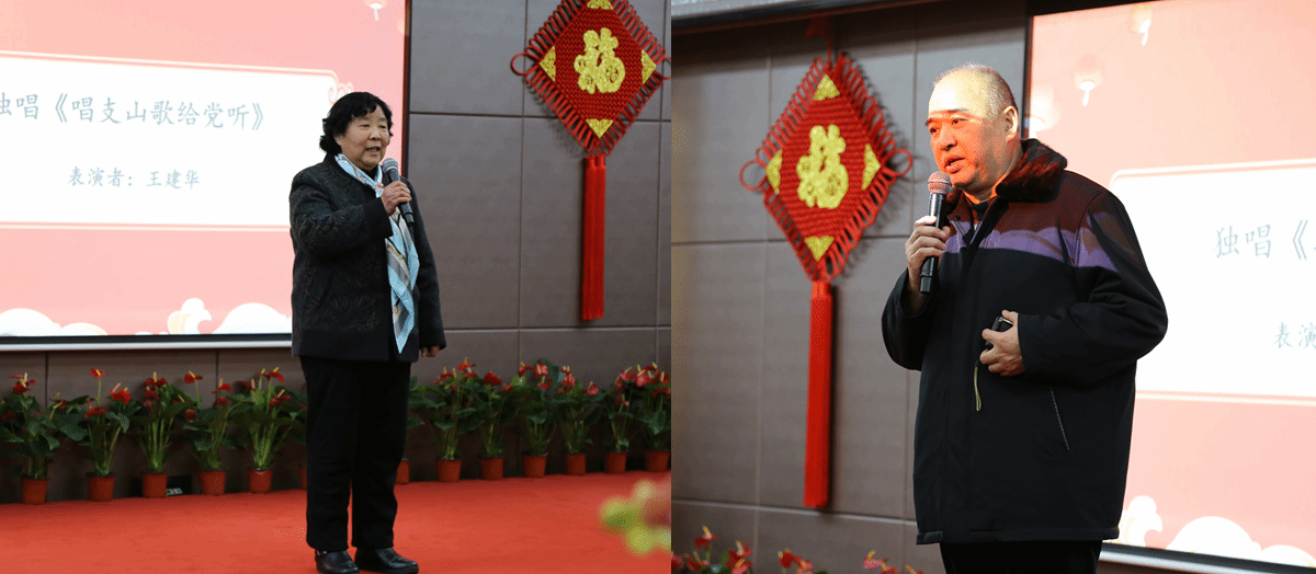 退休教师王建华、黄行康分别给大家带来了独唱《唱支山歌给党听》和《我爱你中国》,歌声宛转悠扬、浑厚而充满力量,传递着对党和国家、对学校和学院无限的热爱。