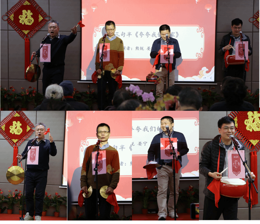 由物理系、材料系、微电系、天文系四位老师表演的三句半《夸夸我们的家》,在锣鼓声中细数学院一年来的成果,诙谐幽默的语言及其包含的鼓舞人心的教学科研硕果引来现场阵阵喝彩。