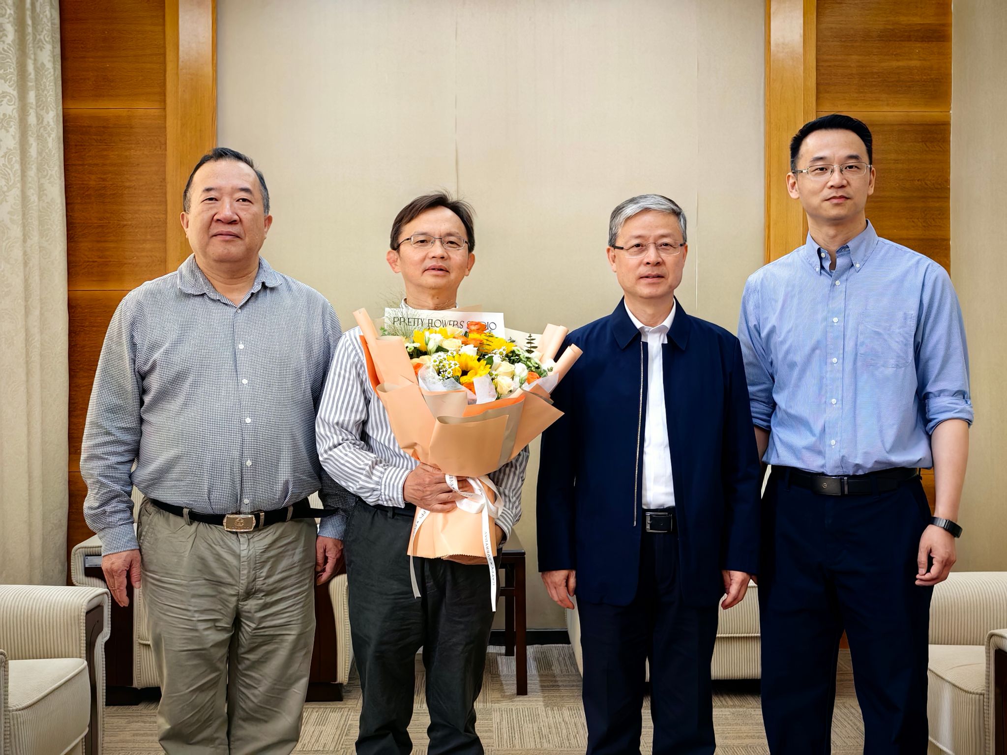 在学院党委书记肖湘衡、副院长邓倩的陪同下,黄泰岩同志亲切慰问了刘正猷教授并送上慰问鲜花和节日的祝福。