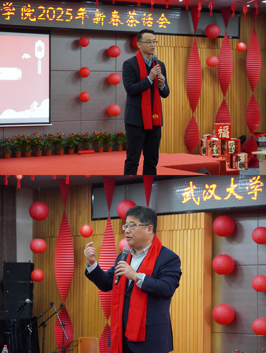 茶话会在学院党委书记肖湘衡、院长何军的致辞中拉开帷幕。肖书记表达了对茶话会举办的美好初衷,希望全体教职工在新的一年里继续团结一致,凝心聚力,再创佳绩。何院长回顾了学院在过去一年中取得的科研和人才引进成就,并对全体师生的辛勤付出表示衷心感谢,期望学院在新的一年里蓬勃发展,再攀高峰。两位领导的讲话赢得了全场热烈的掌声,也寄托了大家对新年新气象的美好期望。