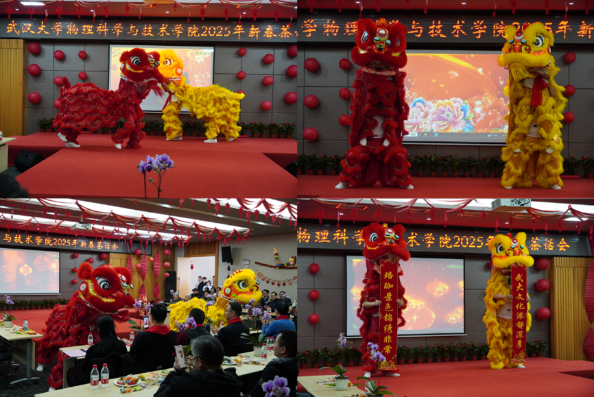 舞狮表演作为传统节庆活动,象征着吉祥如意。由学院教师和本科生组成的表演团队经过精心排练,以精湛的技艺和默契的配合,将祥狮的灵动与喜庆展现得淋漓尽致,为茶话会增添了浓厚的节日氛围,现场观众无不为之喝彩,掌声雷动。