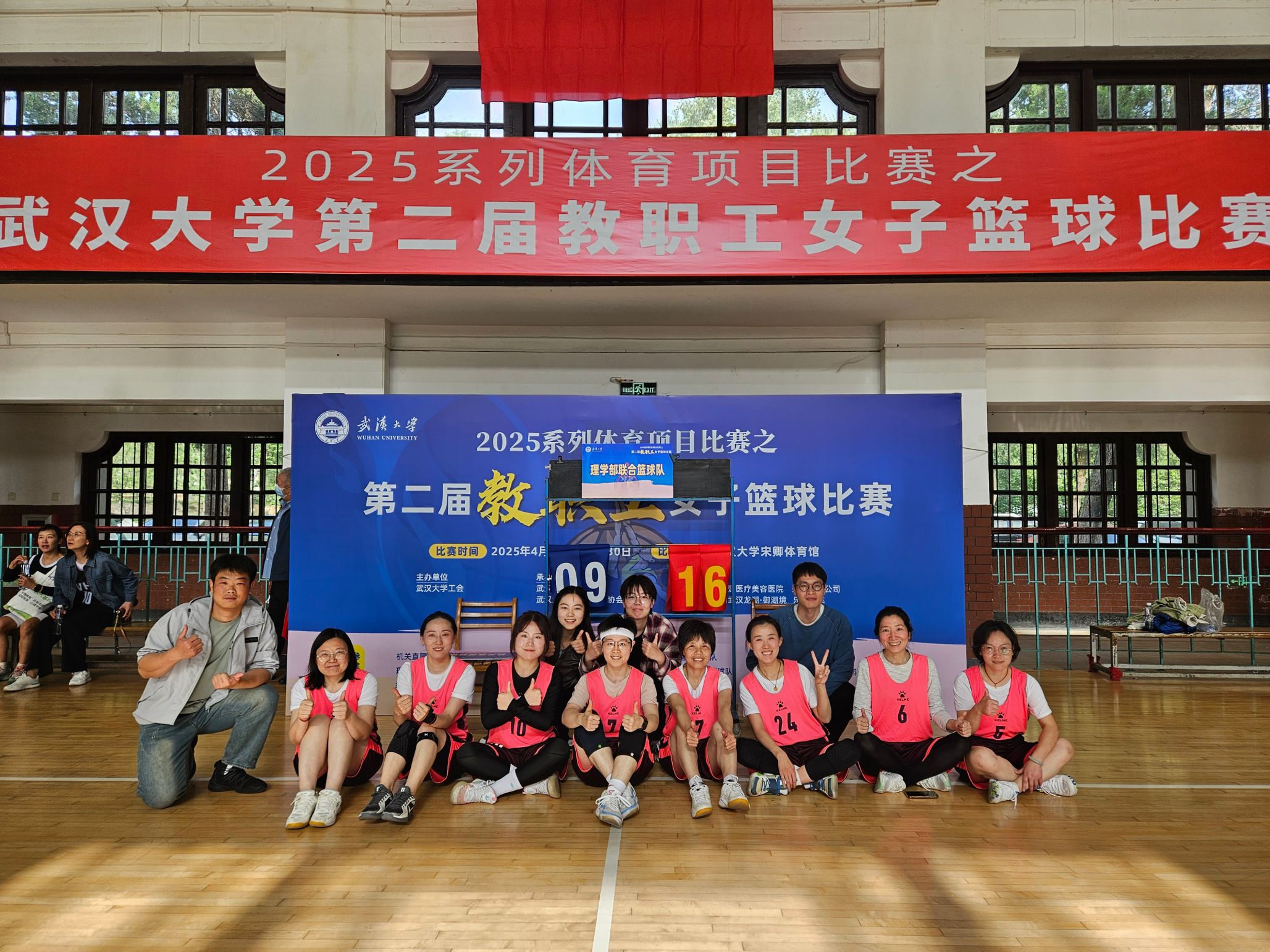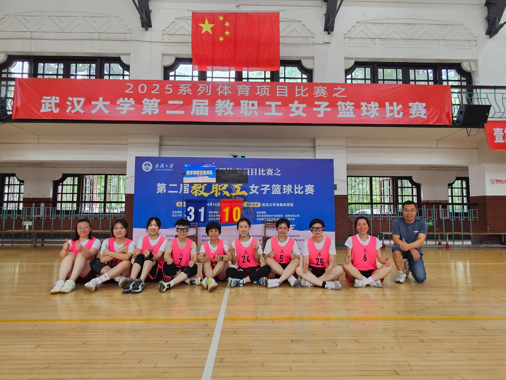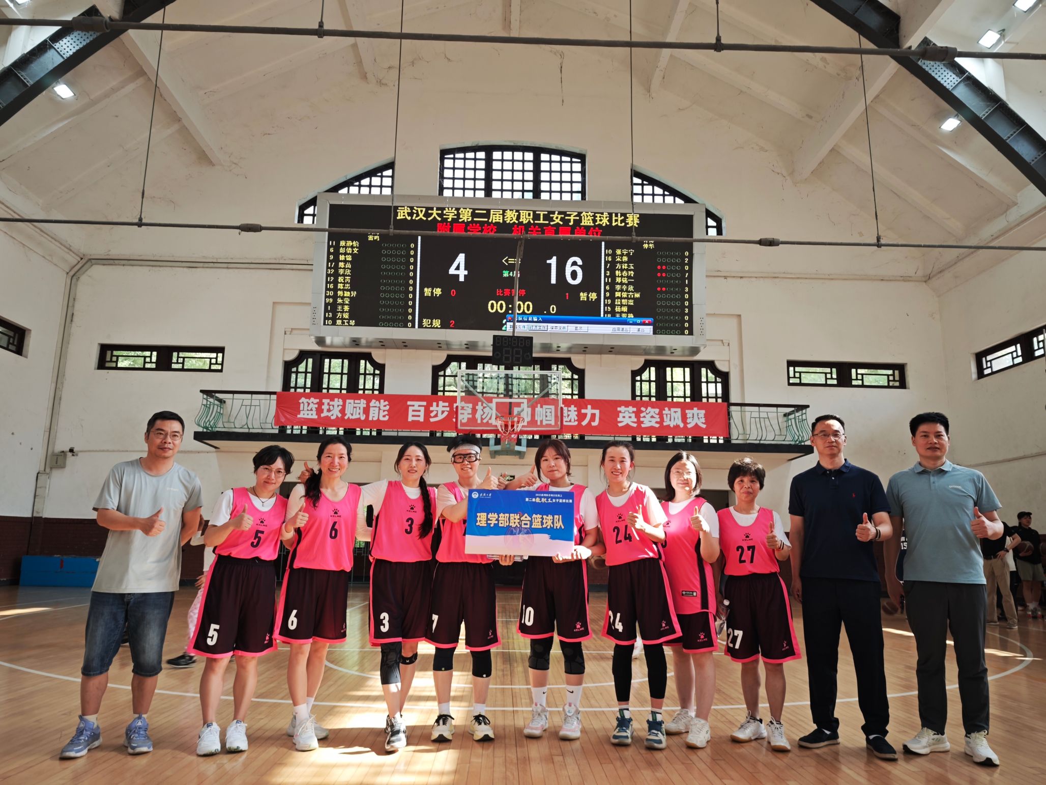 、化学与分子科学学院、资源与环境科学学院联合组成的理学部教职工女篮联队奋勇拼搏,最终斩获并列第三名的佳绩,展现了理学部教职工团结协作、昂扬向上的精神风貌。