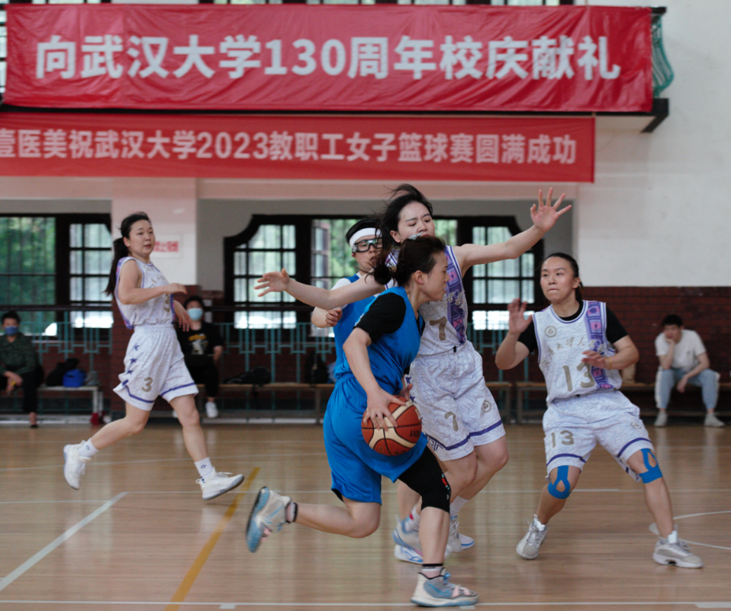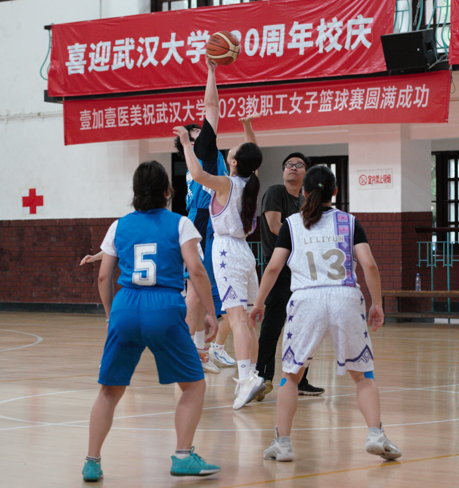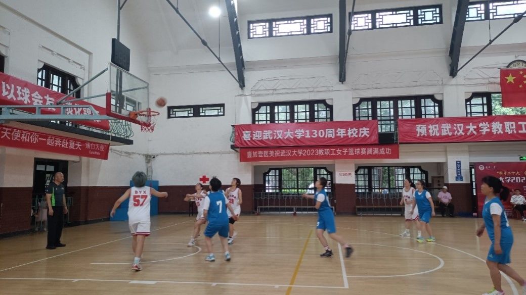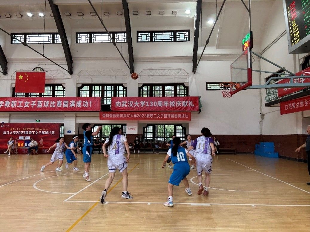 教职工女子篮球赛在宋卿体育馆举行,物理-化学女篮联队队员们经过奋力拼搏,获得了全校第五名的优异成绩。