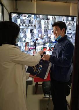 李利华副院长代表学院对物业公司工作人员进行了慰问,寒假期间他们坚守岗位、严格把控人员进出、认真做好环境消毒等工作,感谢他们为学院疫情防控工作付出的辛苦和努力。
