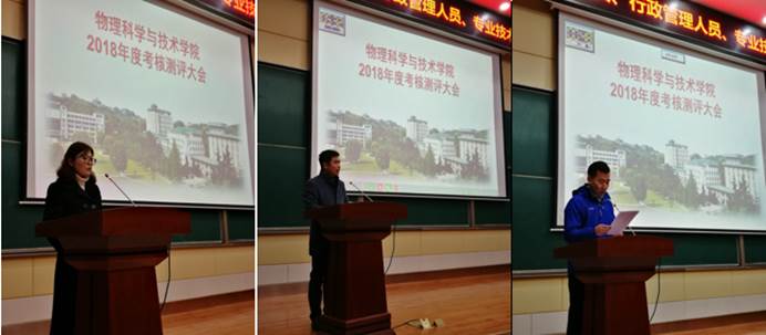 召开了2018年度考核测评大会,学院全体辅导员、办公室人员以及实验系列人员参加了现场考核。学院领导班子成员、教代会代表、本科生和研究生代表作为评委进行现场打分。