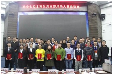 、华中科技大学、武汉理工大学、中国地质大学(武汉)、华中农业大学、华中师范大学和中南财经政法大学等7所高校的10个优秀本科生党支部同台竞技。校党委副书记赵雪梅、湖北省教育厅思想政治教育与社会科学研究处处长何泽云,以及各参赛高校相关职能部门和院系负责人出席并担任评委。