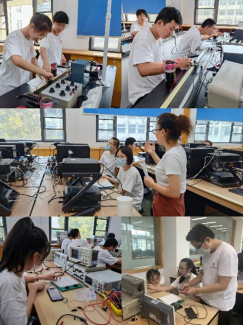 物理学实验示范中心,实验中心的老师们特地开放了近代物理、电磁学和电子线路三个实验室并早早的布置好相关实验仪器。一中同学们根据分组有序进入不同的实验室,带教老师认真的给同学们提醒实验室安全、实验原理和实验目的等内容,并鼓励同学自己动手实验,亲身感受物理学的魅力。面对未知的科学问题,同学敢于思考、敢于动手,不少同学都做出了满意的实验结果,也获得了实验中心老师的好评。