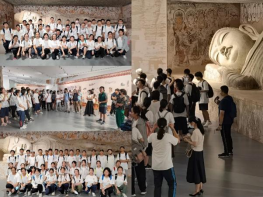 下午的活动首先来到了一中师生一直期待的万林博物馆“万里千年——敦煌石窟考古特展”。在参观游学之前,一中老师给同学们布置了敦煌历史的相关课题作业,每个同学都是带着疑问和自己的思考来参观的。进入博物馆,映入眼帘的大卧佛造像引得同学们称赞不已,纷纷拍照留念。在现场讲解志愿者刘奕江同学的带领下,同学们一边认真听着讲解,一边找机会提出自己的问题,现场互动良好,讲学相互促进,同学们收获满满。万林博物馆的展览再一次让师生感受到骰宝规则