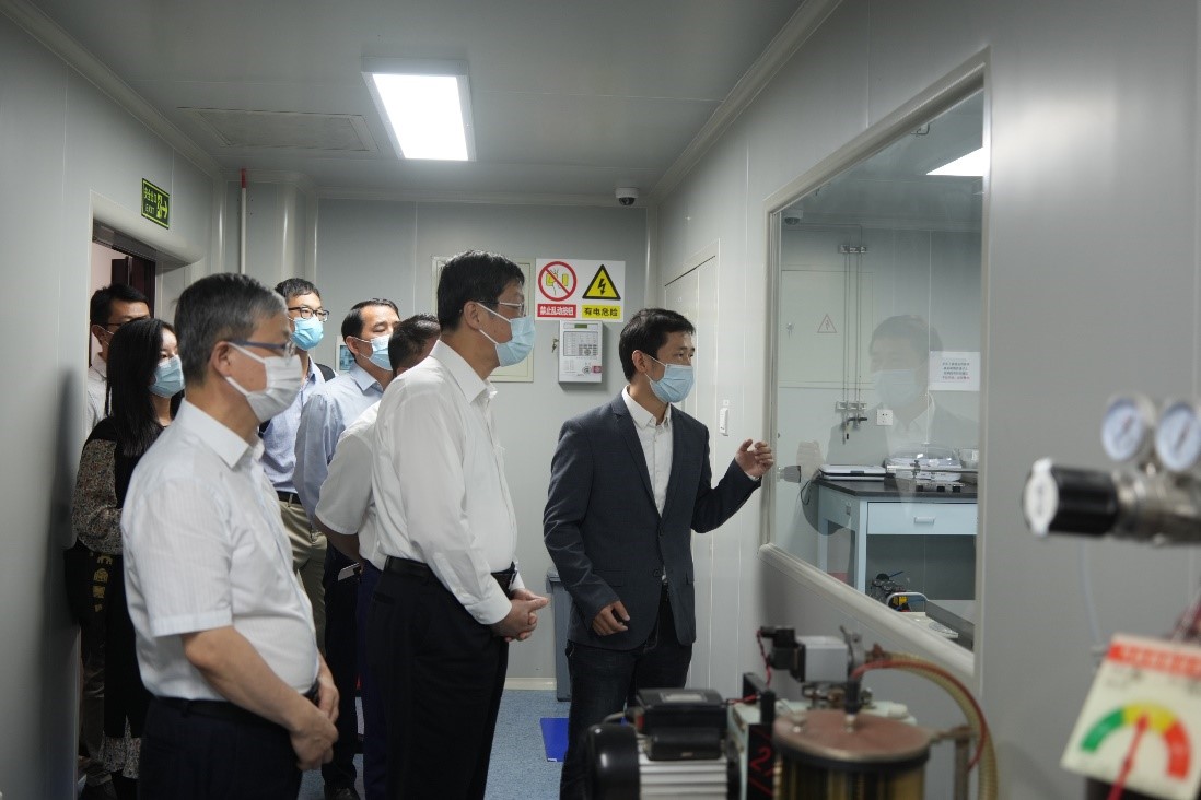 康涛参观了学院微纳加工实验室、新型半导体信息器件及芯片实验室和光电超净实验室,并就新一代光伏技术钙钛矿太阳能电池的研究进展和产业化进程、新型二维材料在光电子器件中的前沿应用、芯片集成领域的先进制造工艺与设备等内容,与实验室研究人员进行了交流。
