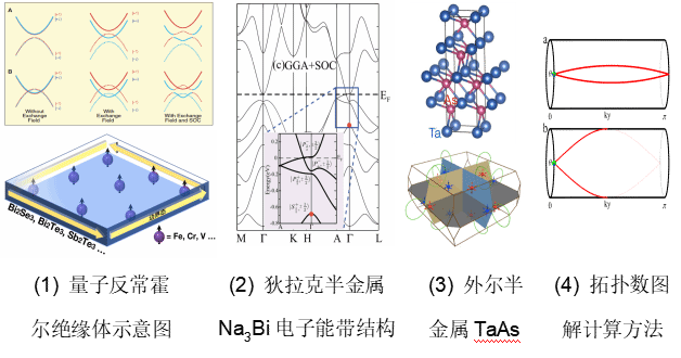 余睿教授参与的中国科学院物理研究所科研项目“拓扑电子材料计算预测”获得2023年度国国家自然科学奖一等奖。项目团队在拓扑电子态领域做出了重要的科学发现。研究团队计算预测成功发现了首个量子反常霍尔效应绝缘体,创新性地提出了在拓扑绝缘体中产生长程铁磁序的新机理和调控磁性绝缘体产生非零陈数的新方案,为实现量子反常霍尔效应绝缘体提供了一个切实可行的材料体系,促进实验上成功观测到该效应(图1)。计算预测成功发现了首个狄拉克半金属(图2)和首个外尔半金属(图3)。成果入选美国《物理评论》系列期刊125周年纪念论文集,是收录的49项重要科学成果中唯一来自中国的工作。提出并实现了判别拓扑性质的普适计算方法(图4)。该方法基于非阿贝尔贝里联络计算拓扑不变量,避免了电子波函数规范选取的困难,且不受材料对称性的限制,是公认的最直接、最自然的标准且普适的计算方法。余睿教授在量子反常霍尔效应绝缘体和拓扑性质计算方法做出了重要贡献。上述成果标志着我国在拓扑物态研究领域站在了国际最前沿。