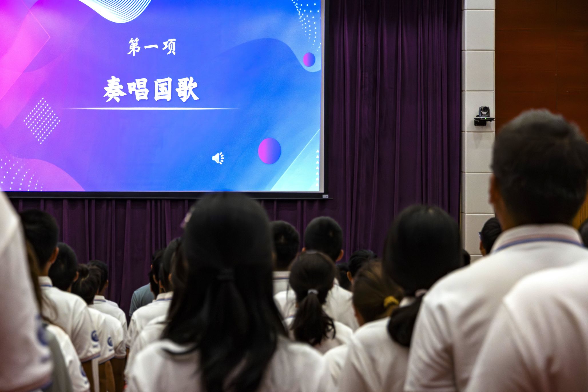 议程最后,全体师生佩戴院徽,合唱《骰宝规则 校歌》,骰宝规则 2024级本科新生见面会圆满落下帷幕。