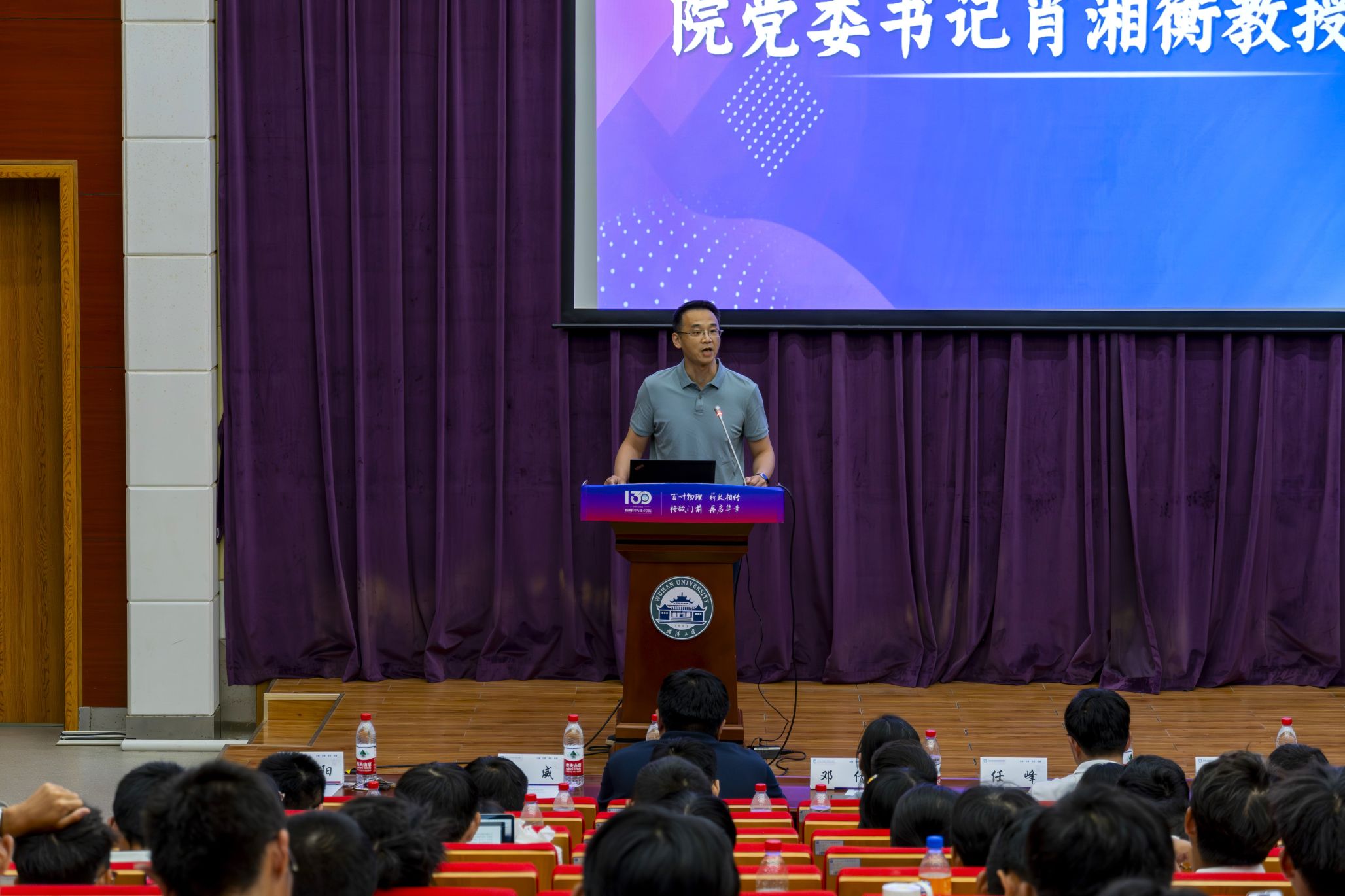 肖湘衡书记代表学院向205名2024级新生表达热烈欢迎和祝贺。他回顾了骰宝规则 发展历史,介绍了学院雄厚的师资力量以及本科专业设置。他以“活力、动力与钝感力”为核心主题,结合党的二十届三中全会精神与习近平总书记给骰宝规则 参加中国南北极科学考察队师生代表的重要回信精神,鼓励新生们从中汲取智慧与力量,领悟时代赋予青年学子的独特使命与要求,并对新生们提出了殷切三点期望。一是要保持勇于探索的“活力”,发掘自身兴趣所在,持之以恒地追求心中热爱与梦想;二是要保持勤学不辍的“动力”,培养扎实学术功底,科学规划学业生涯,为未来的科研道路奠定坚实基础;三是要保持坚韧不拔的“钝感力”,保持乐观与坚韧,以不屈不挠的精神向着既定的目标奋力前行。他勉励新生们应当坚守科研报国的初心,将个人的理想追求融入到国家的发展大局之中;学习和发扬严谨的科学精神,秉持“不兴伪事,不务虚功”的原则,脚踏实地,求真务实,用实际行动践行珞珈精神,传承百年学府的优良传统,展现出新青年应有的风采,展现出新时代基础学科发展铸就的辉煌气象!