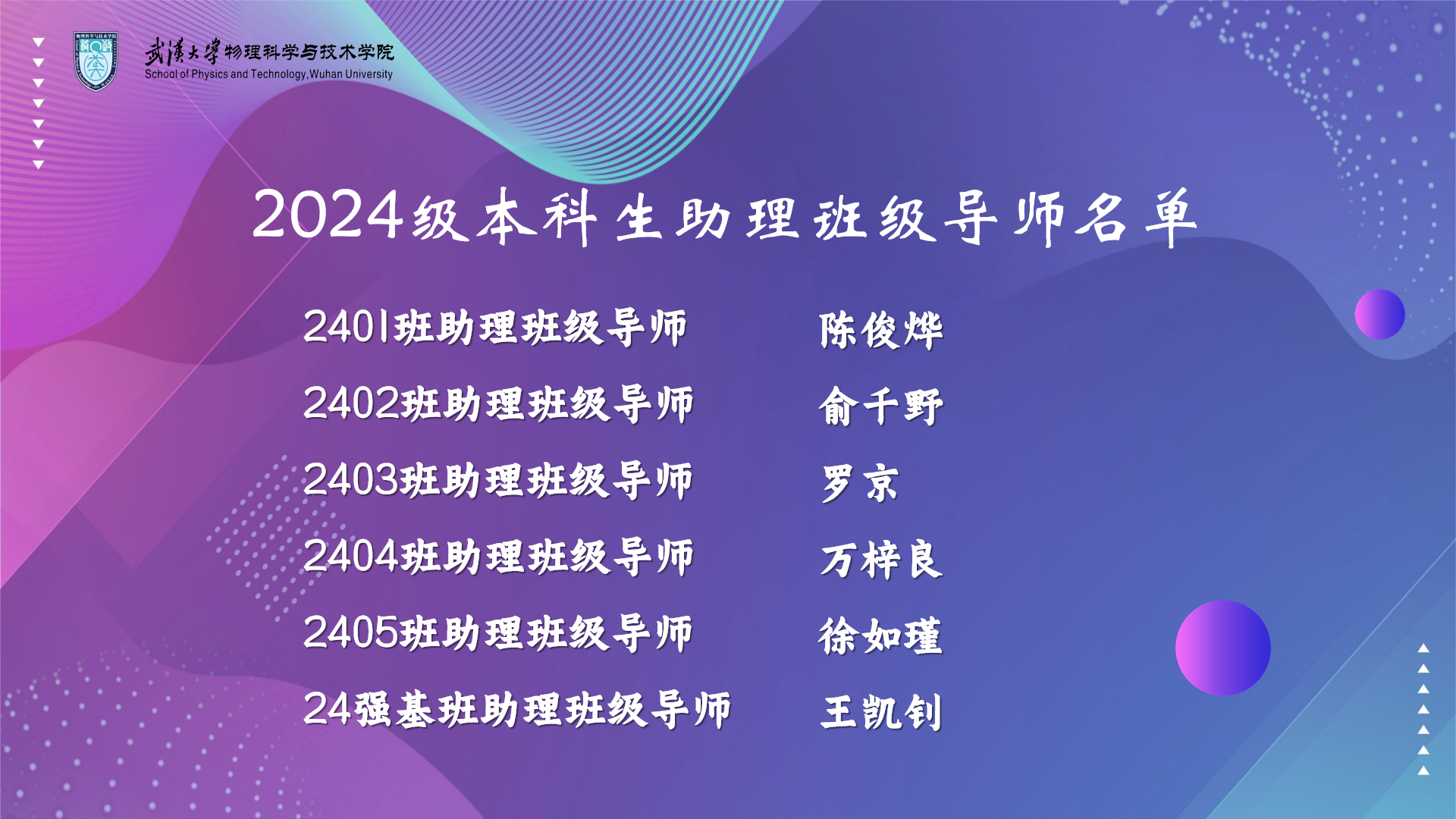 院党委书记肖湘衡、党委副书记王植平为2024级本科生班级导师颁发聘书。为进一步优化2024级本科生的教育管理体系,充分发挥广大教师在本科生思想政治教育、学业指导等方面的重要作用,形成全员育人合力,提高人才培养质量,学院为2024级本科生每个班级配备一名班级导师,巍巍师魂,班级导师们以学养德,以身示范,精耕育人沃土,引领新生在物理学科破浪前行。