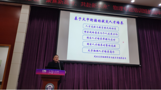 的人才培养模式,并分享了学院近年来的生源状况,就中学与大学教育的衔接、转专业政策、学科竞赛组织等关键议题与在场老师们展开了热烈讨论;孙亮老师则着重对武大物院的学科专业设置、师资队伍规模与实力、科研创新成果等方面进行了细致入微的讲解与展示。