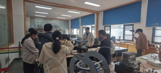 物理国家级实验教学示范中心的近代物理实验室、力热实验室、光学实验室以及电磁学实验室。参观过程中,与实验教学老师们进行了热烈的交流互动,深入了解了物理学科前沿的实验设备与研究成果。