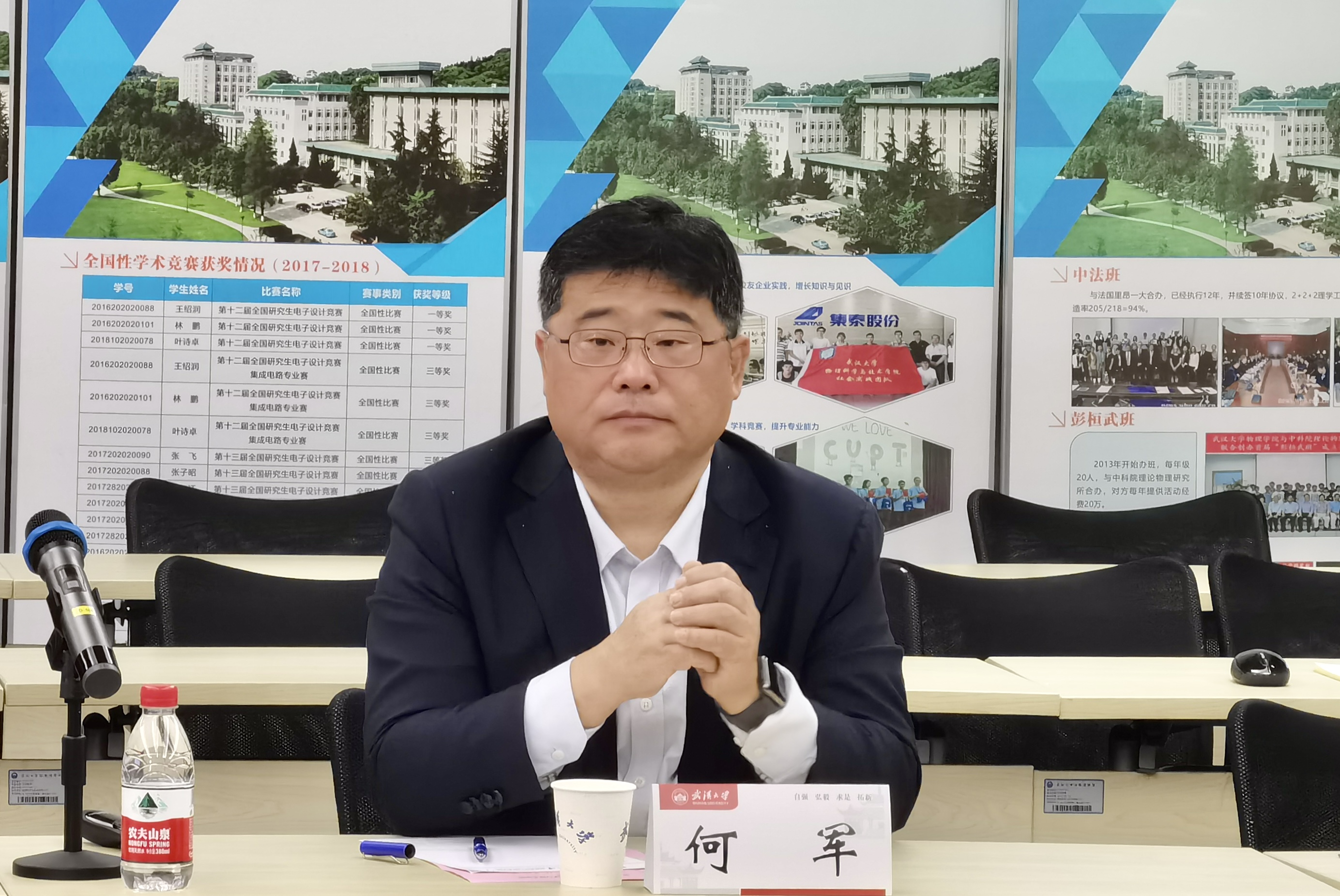 院长何军做工作汇报。他从学科基础、师资队伍、人才培养、科学研究等方面,介绍了学院近些年来的工作举措和取得的成绩,分析了学院发展中存在的问题和不足,针对性提出了下一步重点工作思路和举措。