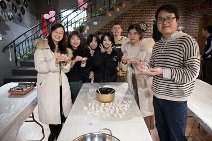 中午时分,大家的肚子都叫了。在支部委员们的带领下,同学们来到了提前租好的地方,聚在一起包起了冬日饺子。没多久,来自五湖四海,东南西北热腾腾的饺子就出炉了,大家开心地吃着自己包的饺子,畅所欲言,也为本次的“谈心谈话”活动画上了完美的句号。