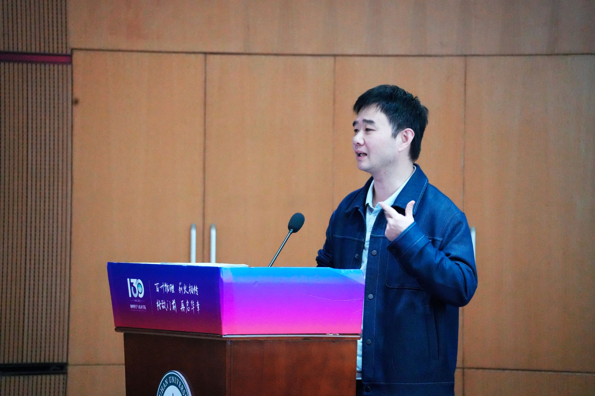 物理系刘晓泽教授从系里师资队伍、研究成果、教学支撑、培养方向和未来展望五个方面介绍了物理系的基本情况。在师资方面,物理系始终秉承“人才强院”的发展理念,不断引进高水平人才、加强人才培养,自2016年以来,新增国字号人才38位,居全校首位。在这样的师资背景下,不仅高水平研究成果逐年增长,每年以第一单位发表SCI论文近300篇,而且本科生和研究生培养成果丰硕,近三年本科生参加专业学术竞赛,获得省级以上奖项46项,近五年研究生在顶刊发表SCI论文1153篇,获奖273人次。在教学科研支撑方面,学院拥有3个省部级平台、4个校级平台、1个牵头成立独立科研机构,建设和完善了多个科研设施平台,力求在硬件设施和软件设施上最大限度满足学生的科研需求。