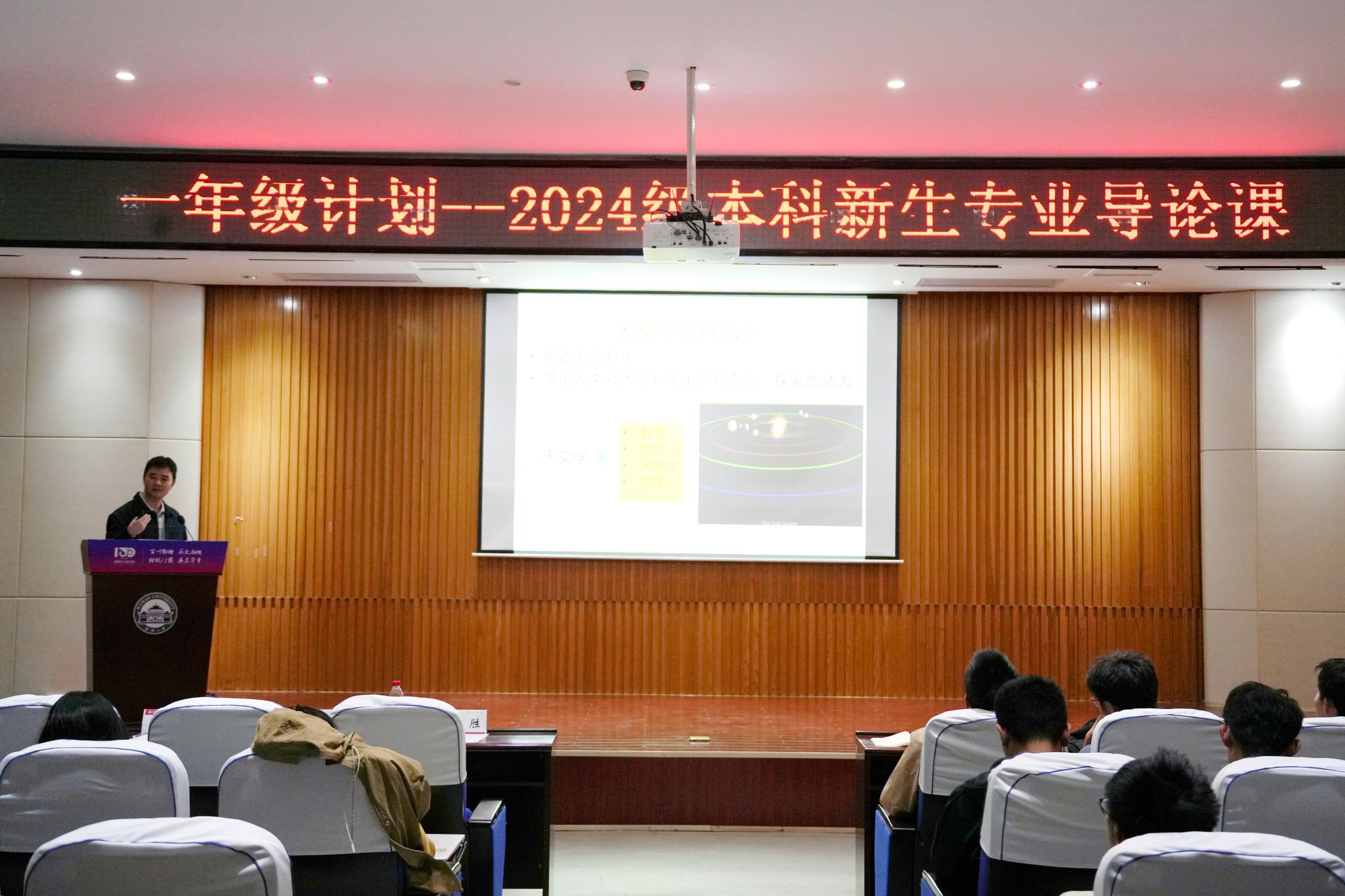 为增进2024级本科新生对学院本科生培养方案及模式的认知,引导与帮助同学们深入了解院内导师课题组的研究方向,从而更好地开展专业规划、进行专业分流以及参与试点班选拔。2024年10月31日,骰宝规则 新生专业导论课系列讲座在骰宝规则 D503报告厅圆满举行,讲座邀请学院教学副院长常胜教授、物理系刘晓泽教授、材料系华斌教授、微电子系余桢华教授、天文学系范锡龙教授、团委书记龙云翔老师来给2024级新生讲授专业导论系列课程,引导同学们建立专业认知、开拓学术视野。讲座由本科生辅导员彭瑾老师主持,2024级全体新生参与活动。