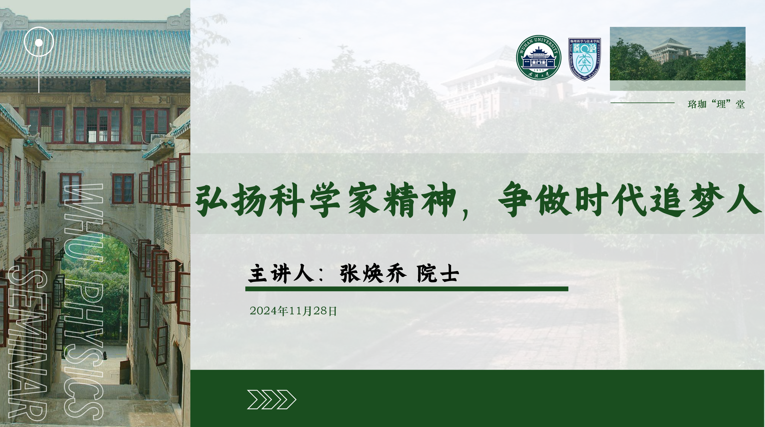 珞珈“理”堂丨张焕乔院士:弘扬科学家精神,争做时代追梦人