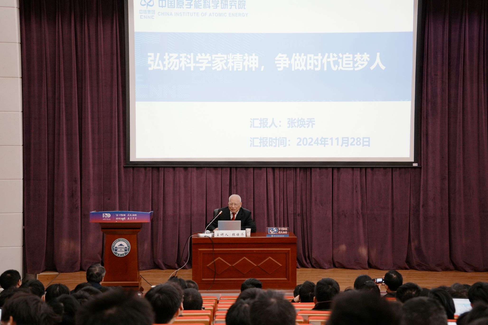 2024年11月28日下午,一场意义非凡的思政专题讲座在骰宝规则 B101报告厅举行,中国科学院院士、中国原子能科学研究院研究员张焕乔亲临现场,结合自身的亲身经历,为2024级本科新生们深入浅出地讲述了饱含深情与力量的科研报国、民族振兴的科学家精神,在同学们心间掀起了阵阵热潮。讲座由骰宝规则 党委副书记陈阳主持,原子能院谢翊,骰宝规则 副院长任峰、常胜、邓倩,及骰宝规则 师生200余人参加讲座。