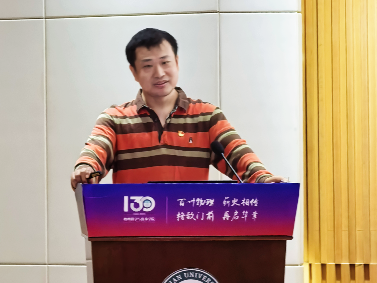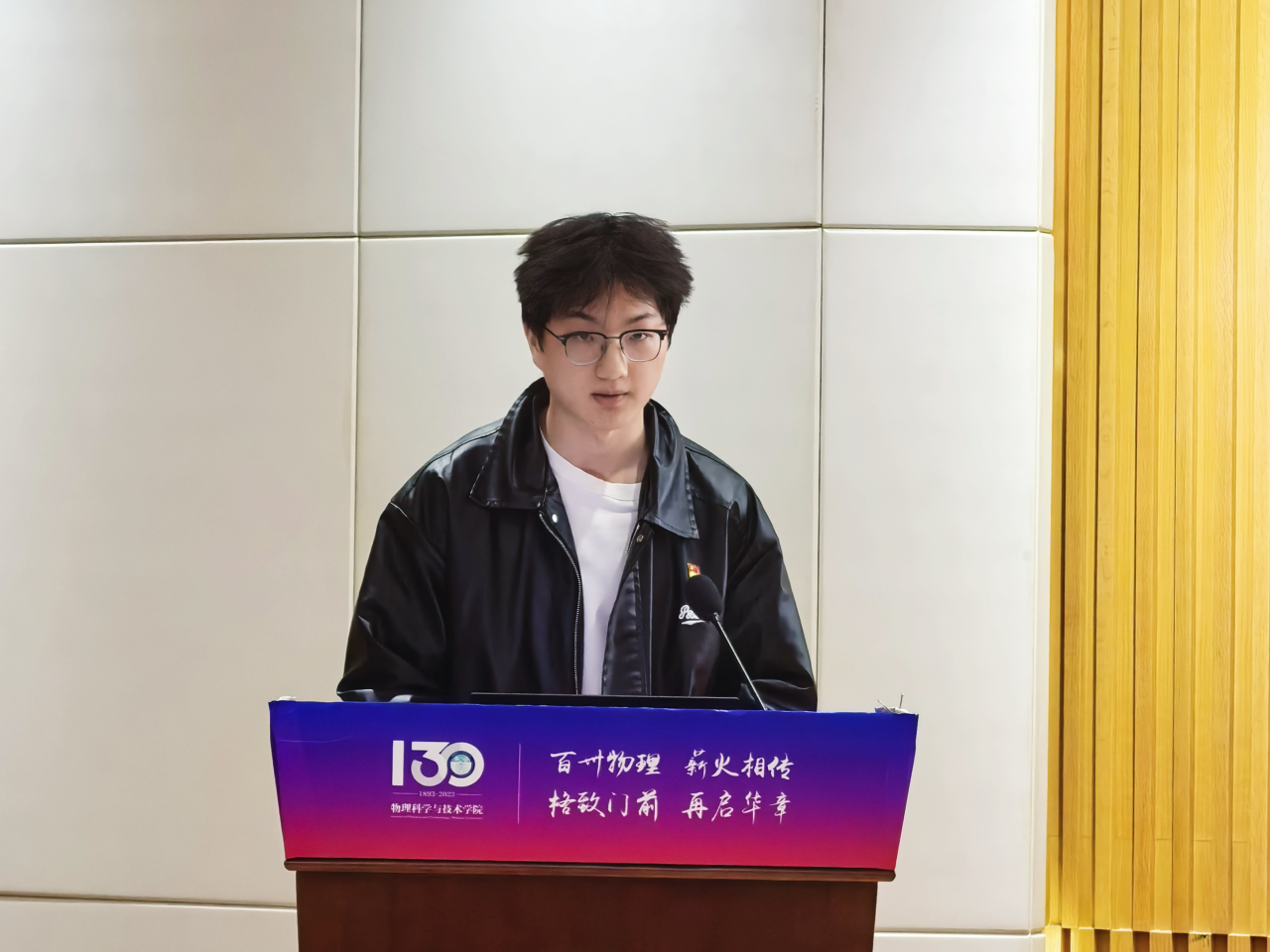 分党校优秀学员代表2023级柴承烨同学发言,他结合自身从入党积极分子发展为预备党员的成长经历,分享了党校学习对其思想塑造的深刻影响。他提到,通过系统学习党章党规、党的百年奋斗史,参与"周顺导读"等实践活动,深刻体会到党员先进性的具体内涵,实现了从理论认知到行动自觉的转化。他从初心坚守、理论筑基、行动赋能三个方面鼓励新学员以党校学习为契机,将个人成长融入国家发展大局,以青春奋斗为物理学科建设和民族复兴贡献智慧与力量。