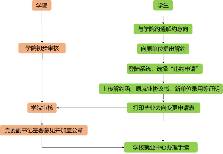 (2)与院系、原签约单位沟通,三方均同意后,方可提出违约申请: