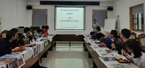 任峰老师首先从离子束的产生开始介绍,提到离子束技术具有诸如强制性、可控性、重复性等优点。接着,任老师通过简单讲解不同能量的载能离子束与固体的一系列相互作用具体谈了离子束的应用,如备受大家关注的芯片制造即是中能离子束与固体相互作用的一个应用,还有对文物进行“法医分析”这一有趣的考古手段即运用了高能离子束与固体相互作用的原理。此后,任老师介绍了自己课题组的研究方向,即离子束在清洁能源材料科学中的应用,涉及清洁能源和核材料。这两者都与生活息息相关,同学们兴趣十足,听的津津有味。