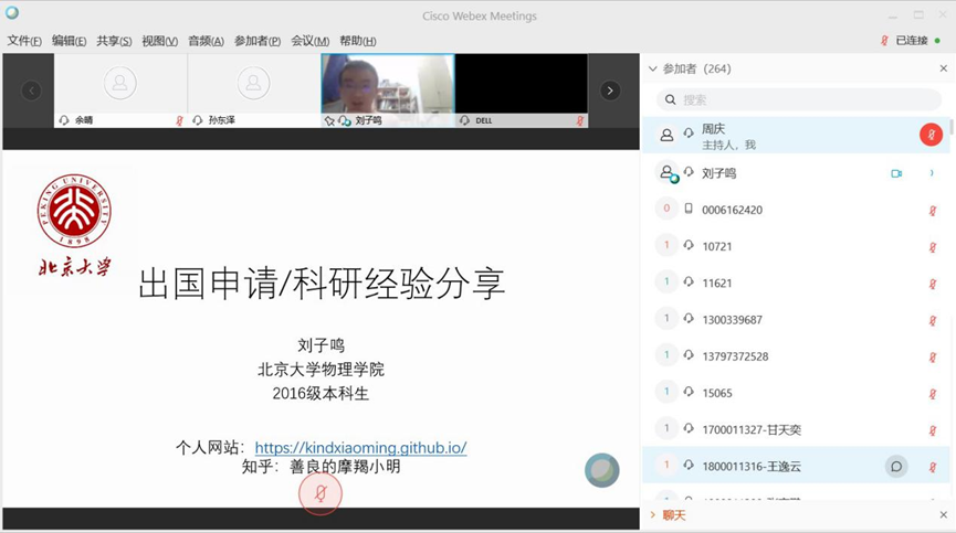 本科生党支部开展了“青春心向党 南北共战疫”第二次共建活动之科研学术交流。本次活动以WebEx线上会议平台视频连线形式进行,来自两校的王玉、唐钺、刘子鸣、何染尘、陈烨、李奇正、孙东泽和沈艺鑫等8名优秀学生代表分享了他们在专业学习、科研竞赛和出国申请等方面的经历,并与参会同学进行了热烈的线上互动。北京大学骰宝规则