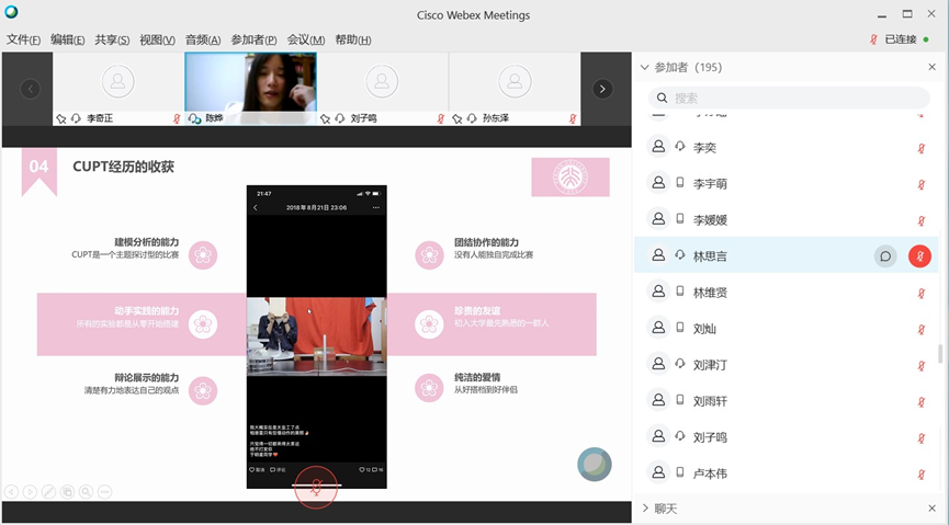 陈烨同学和沈艺鑫同学分享了竞赛经验。他们认为,竞赛对自己的专业发展影响很大,在一两年的筹备过程中,自己建模分析能力、观点表达能力、团队协作能力都获得了提升。
