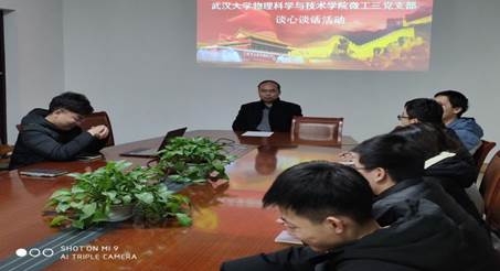 201916日晚8点,微电三党支部于物院C-203开展了“谈心谈话”活动,活动邀请了方国家老师,支部书记李佳帅同志主持了此次活动。活动期间,方国家老师耐心解答了大家在生活科研过程中遇