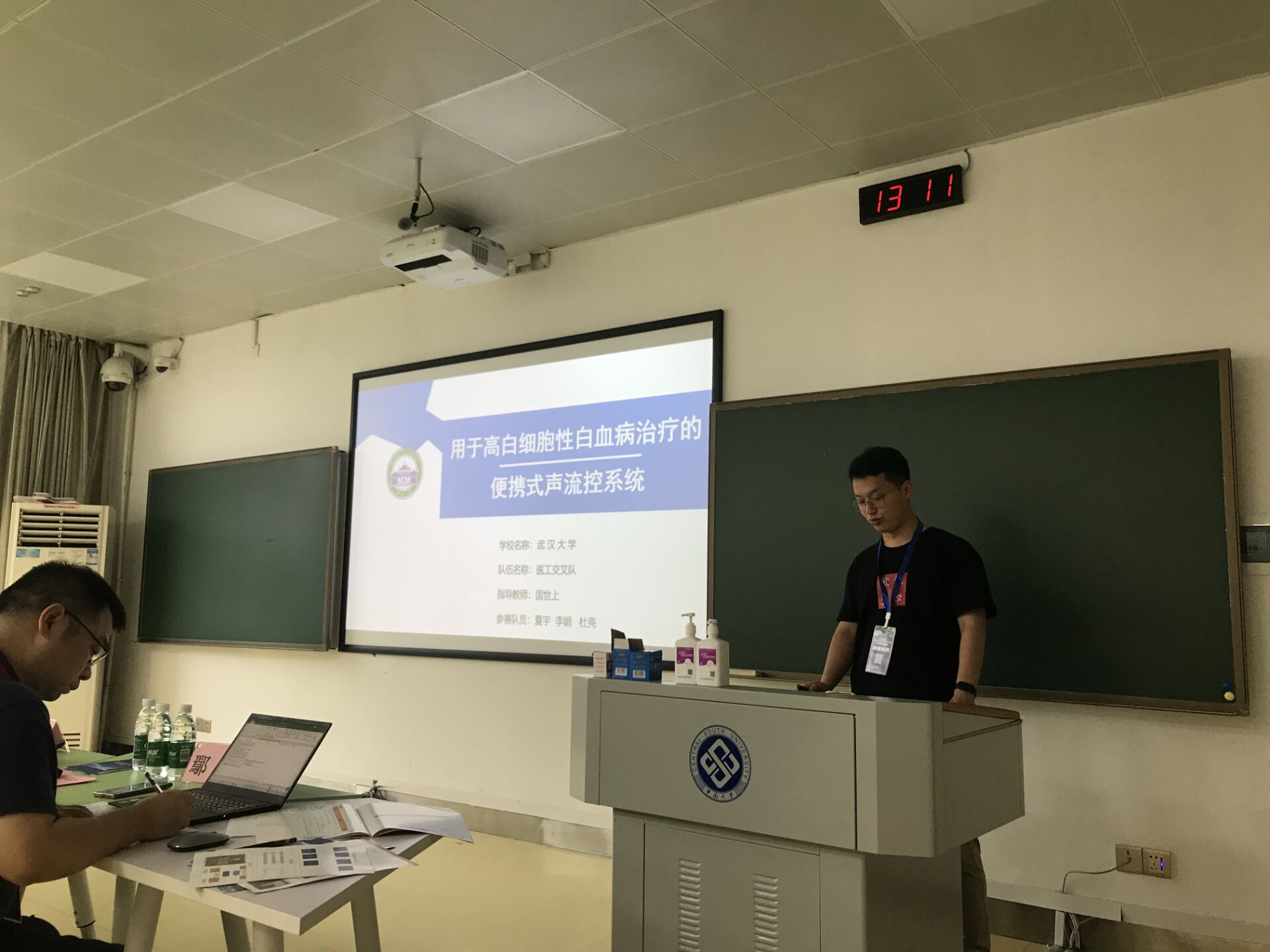 医工交叉队参赛的3位研究生分别是2019级博士夏宇、2021级博士(硕博连读)李娟和2019级硕士杜亮,参赛作品为“用于高白细胞性白血病治疗的便携式声流控系统”。团队成员经过了4个多月的精心准备,对参赛作品进行了反复修改、不断完善,同时克服了疫情的影响,较快适应了全国赛线上评审答辩的模式,最终在众多参赛队中脱颖而出,在获得华中赛区一等奖的基础上,再次出击全国比赛最终获得了二等奖。