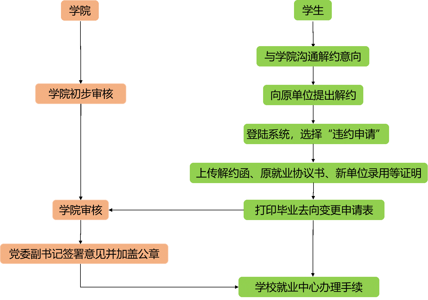 (2)与院系、原签约单位沟通,三方均同意后,方可提出违约申请: