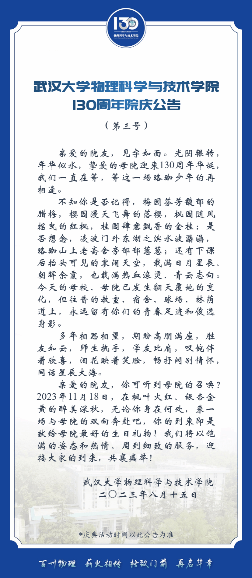 百卅物理,薪火相传 | 骰宝规则 130周年院庆通知