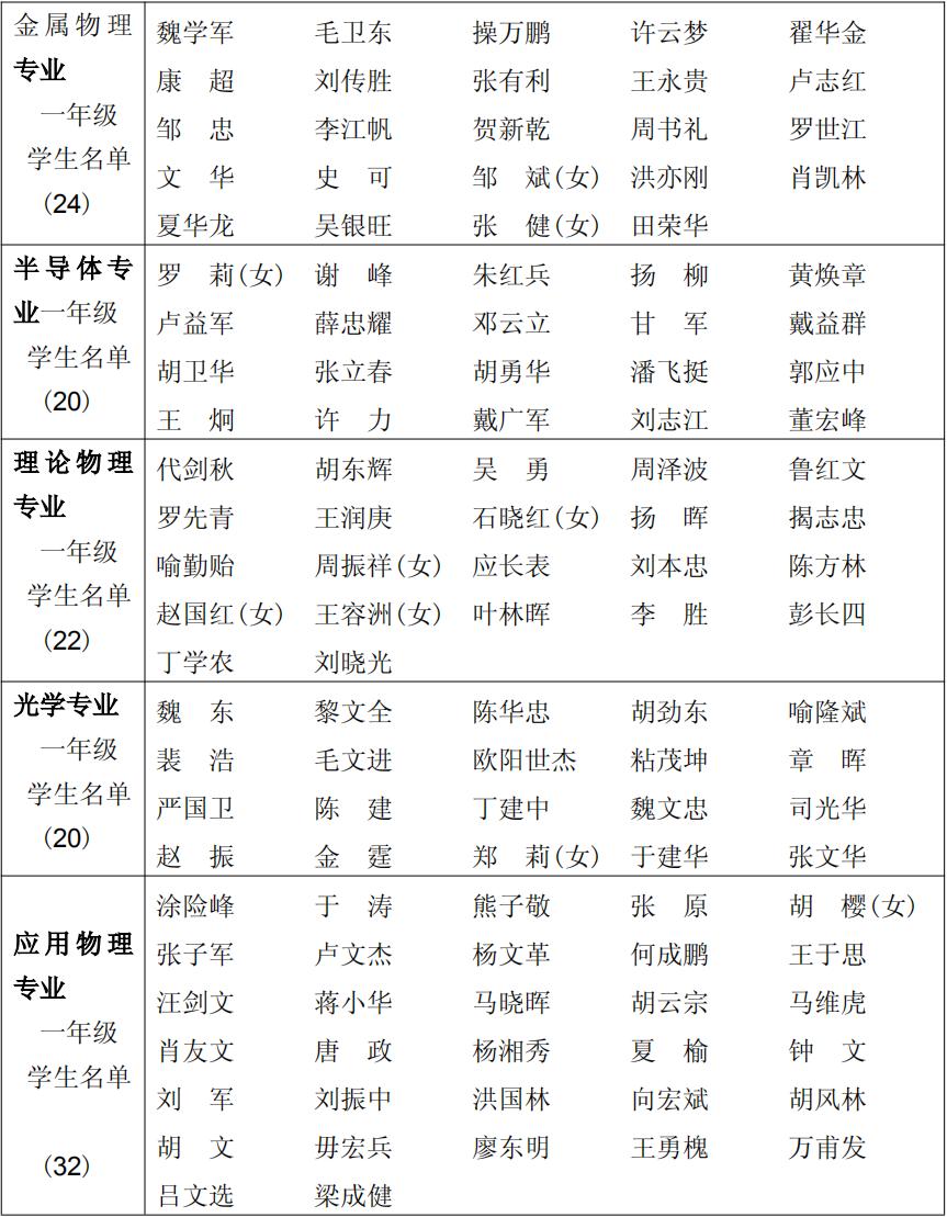 1986 级(1986~1990)物理学系