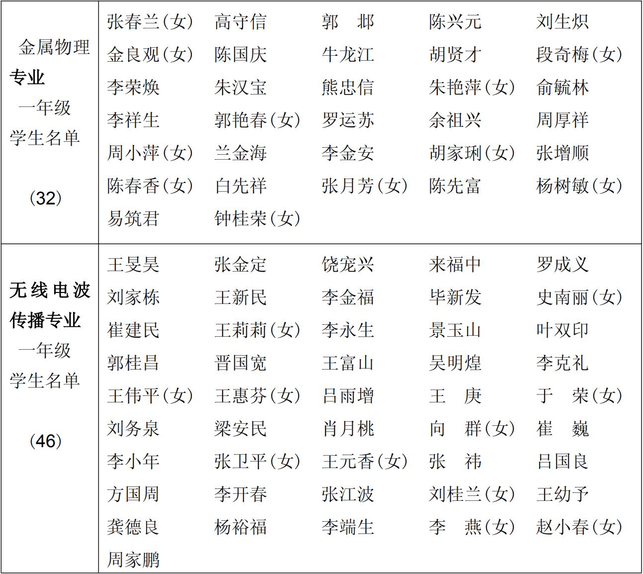 1972 级(1972~1975)物理学系(工农学员三年制)