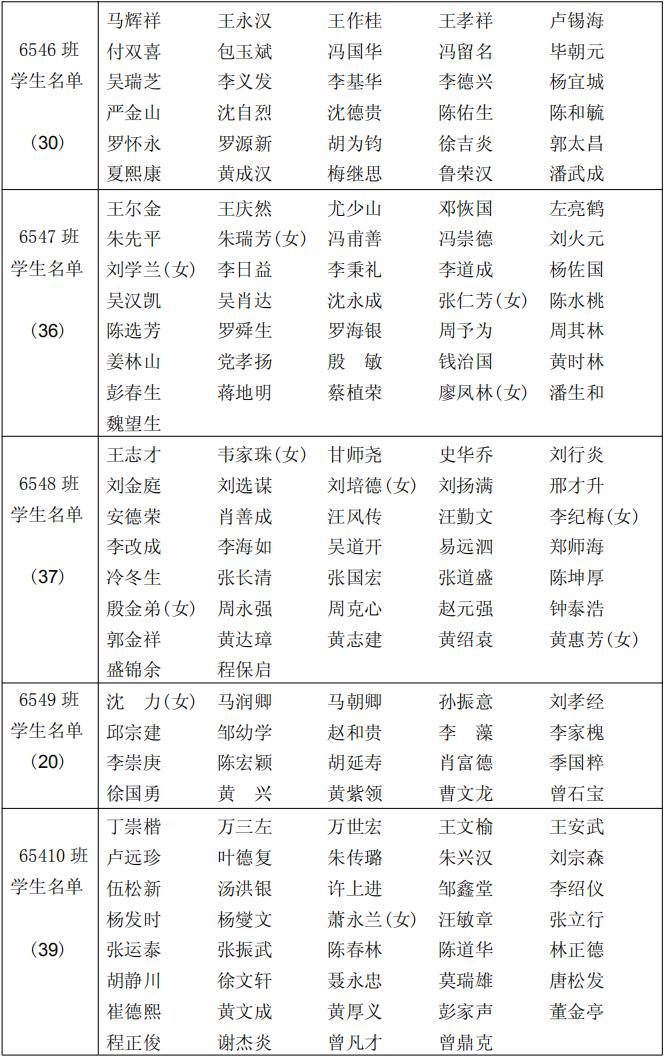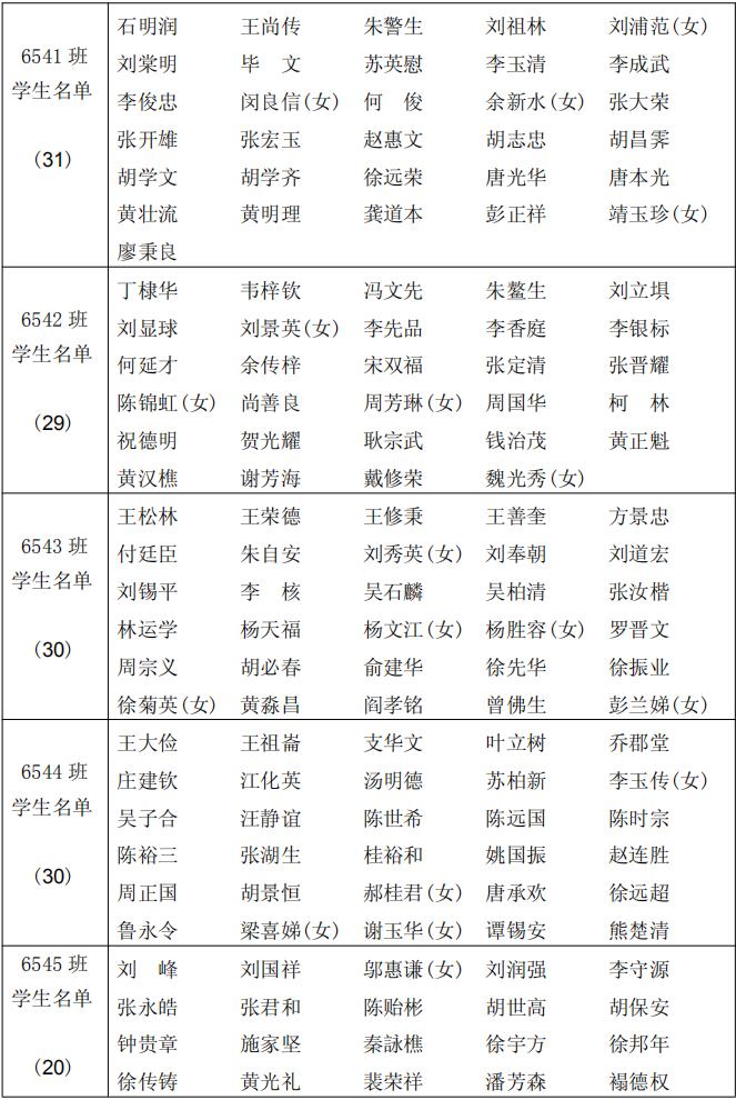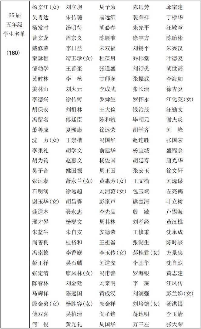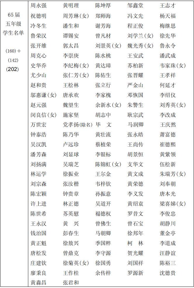 录自 1965 届毕业 40 周年纪念册(302 人)